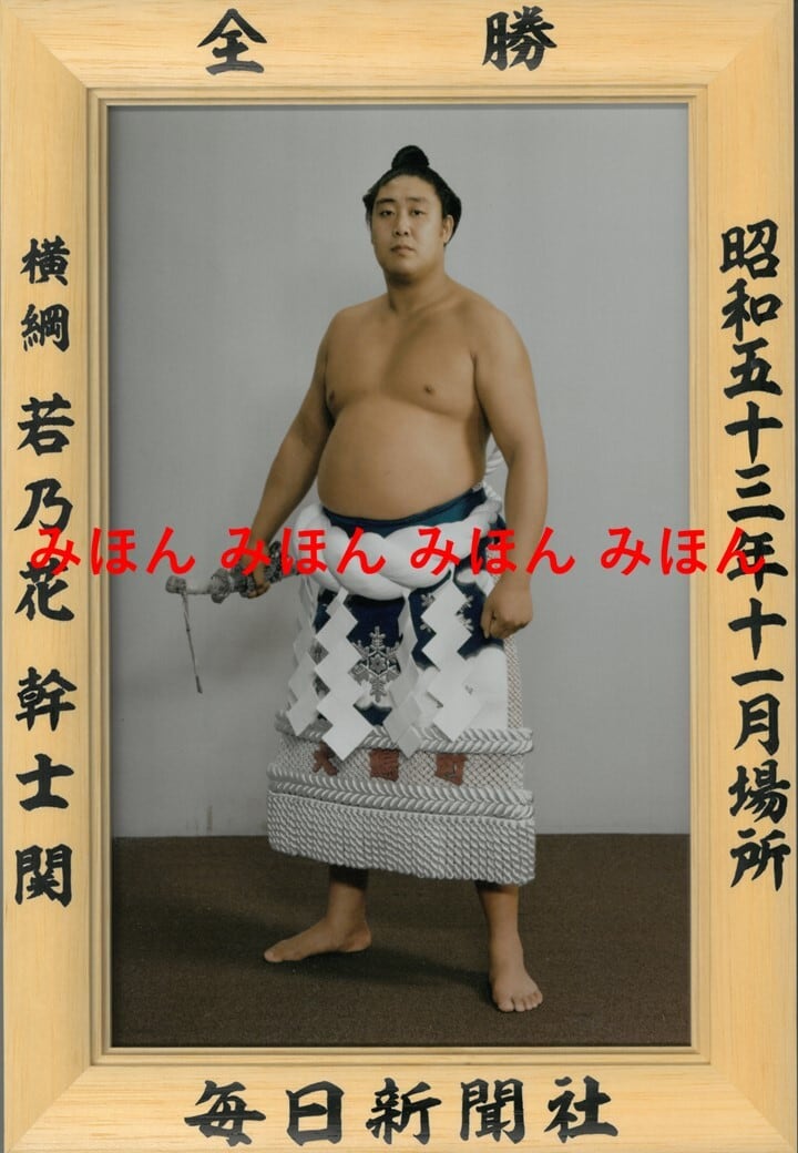 昭和53(1978)年11月場所で全勝優勝した、横綱 若乃花幹士関の優勝額ミニチュア版です。